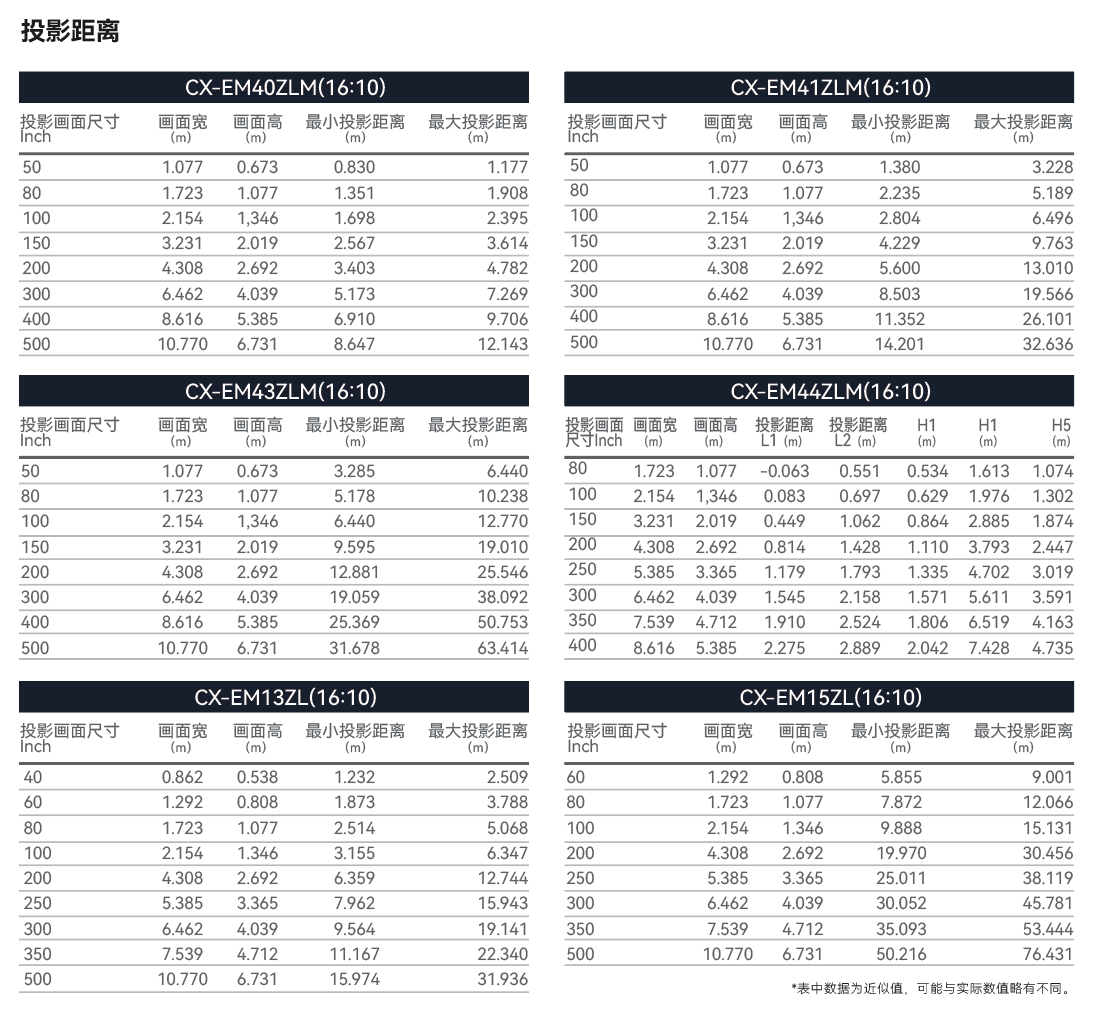 投射比 | 1.30-3.02 (标镜) | |